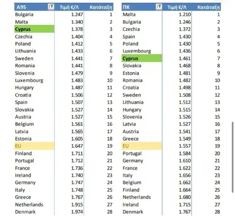 ⛽️ Кипр вошёл в топ-3 стран ЕС с самыми низкими ценами на бензин