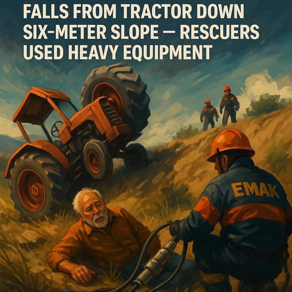 🚜 В Ларнаке 81-летний фермер сорвался с трактора и упал с шестиметрового склона — спасатели доставали его спецтехникой
