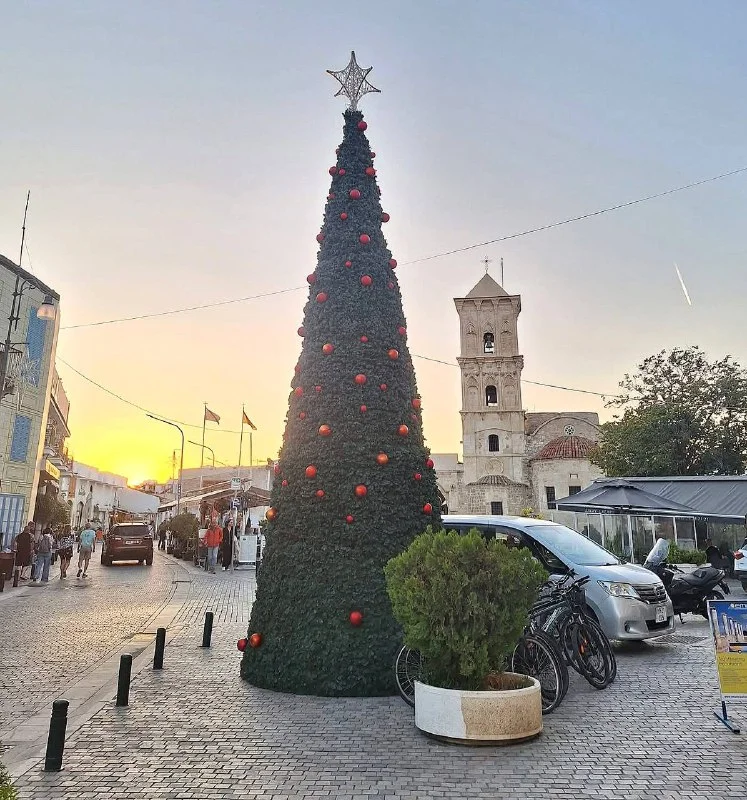 🎄 Рождественская ёлка около церкви Лазарос **в Ларнаке полностью украшена