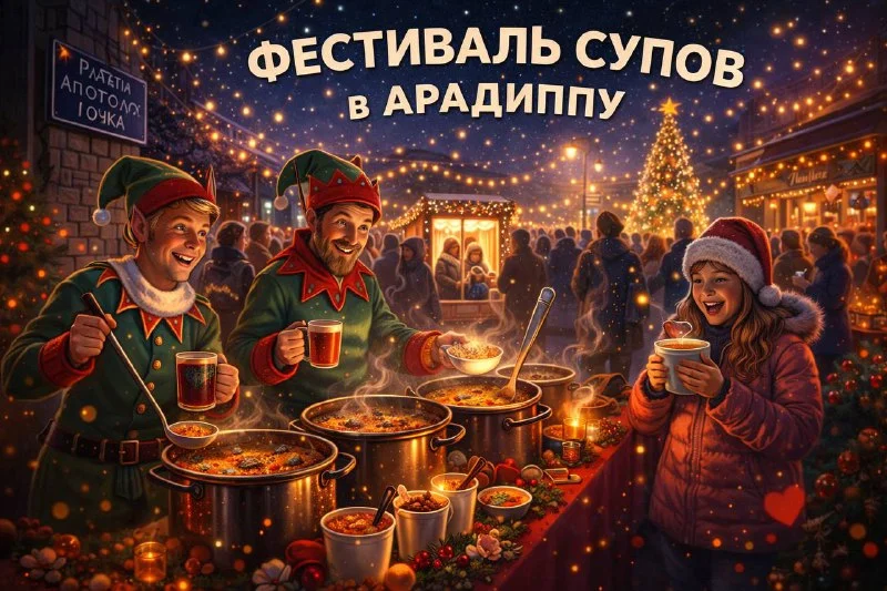 В Арадиппу вновь пройдёт тёплый и по-настоящему зимний фестиваль супов. Гостей ждёт дегустация разных видов супов, ароматный глинтвейн и эгг-ног, а также праздничная атмосфера с рождественской музыкой и аниматорами в образе эльфов Санты.