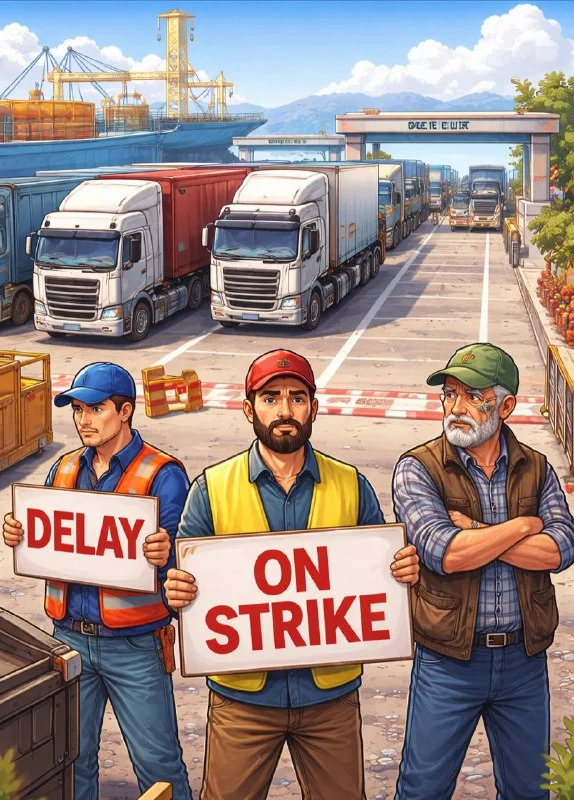 🔈 Порт Ларнаки: водители грузовиков вышли на двухчасовую забастовку из-за задержек с грузами