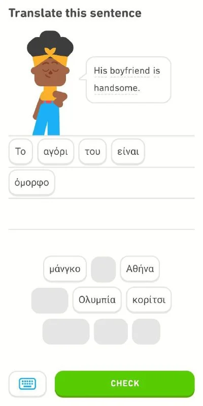 у меня в этом приложении ошибки бывают, путаю иногда ours / our own, yours / your own, или не туда вставляю δικό μας (с вариациями)