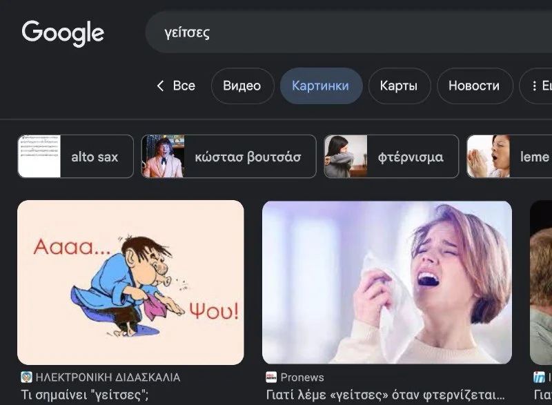 Тут есть фразочка γείτσες