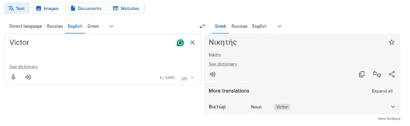 кстати, забавно, что ниже предлагает Βικτώρ с удалением на ω. Раньше предлагал Βίκτωρας, но мне тако...