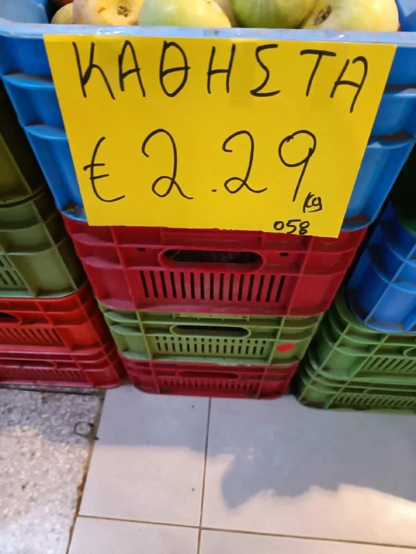 Уважаемые знатоки греческого, что написано на ценнике под яблоками?