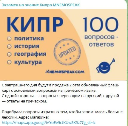 Скажите пожалуйста где можно купить карточки для подготовки к экамену по культуре и истории Кипра?