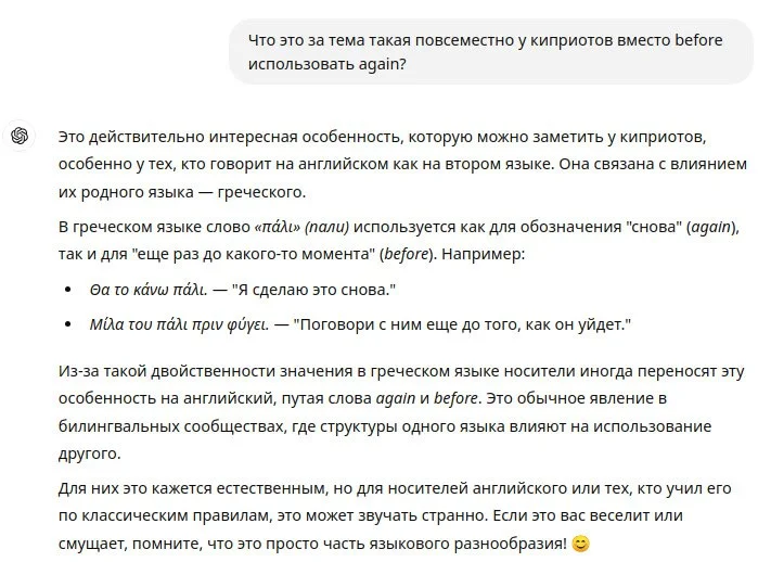 Что это за тема такая повсеместно у киприотов вместо before илспользовать again?