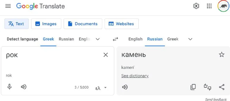 DeepL с греческим чуть лучше справляется, во всяком случае, на мухлу он дает варианты.