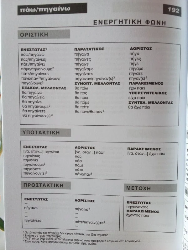 Όχι! Πάω — это аорист, типа совершенного вида в русском (схожу), а πηγαίνω — несовершенного (хожу). ...