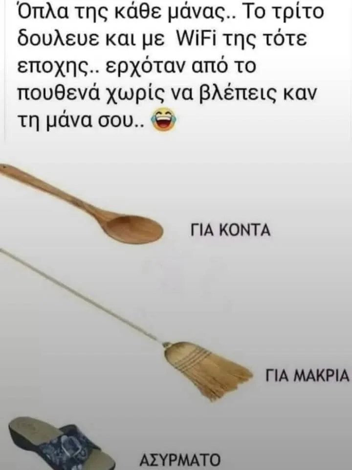 "Оружие" матери-гречанки. Третье из них срабатывало даже с Wi-Fi тех времён - появлялось из ниоткуда, и маму ты даже не видел! 🙈😁