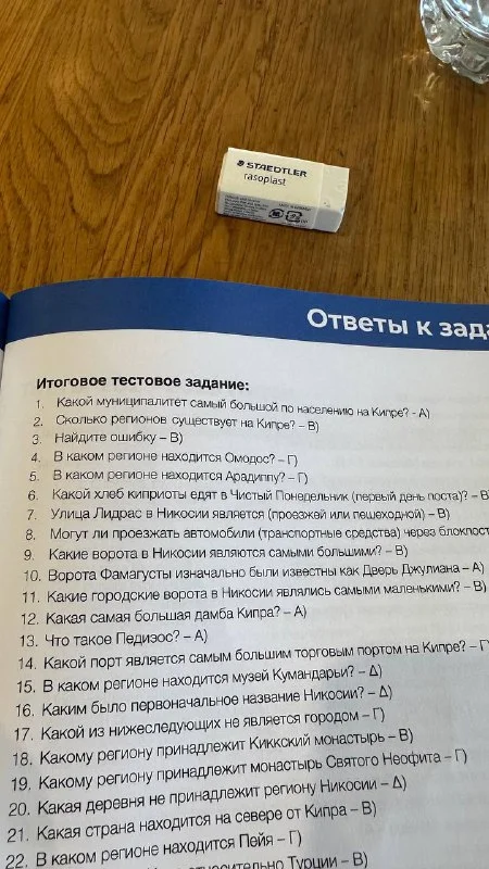И 20 вопрос еще) про то, какая деревня не принадлежит району Никосии, в ответах Какопетрия, но по карте она же принадлежит 🤔