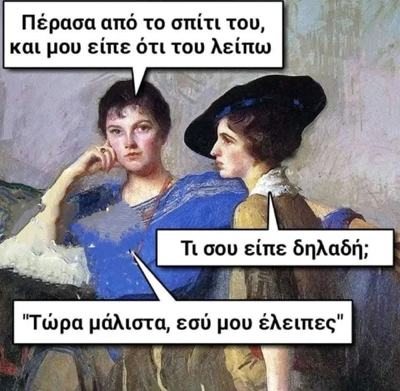 😁😁😁 Учим форму "μου λείπεις" - я скучаю по тебе и "περνάω από"- заходить(не на долго)
