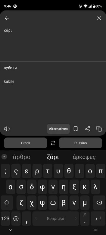 также попробуйте перевести μούχλα, будет "форма", а не "плесень", или ροκ - будет "камень"