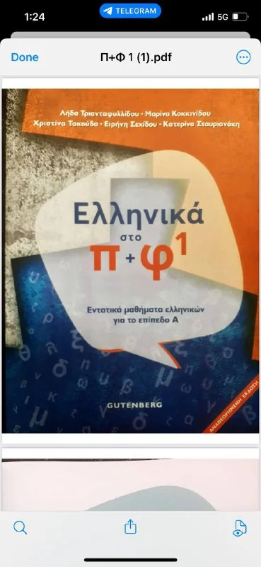 Смотрим в закрепе "Полезные файлы. Материалы для обучения" - "Всевозможные книжки и учебники по греческой тематике" - Находим в списке "pf" - "Ελληνικά στο π + φ 1". (Если Вы желаете его приобрести, это уже другая история 😊)