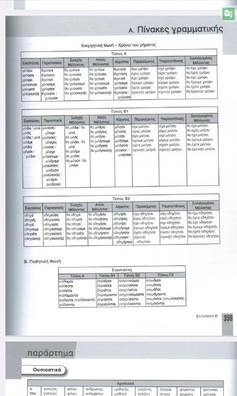 Эта таблица в учебнике Ελληνικά Β. Но там просто шаблонно дается каждая категория. Это не свод глаголов.