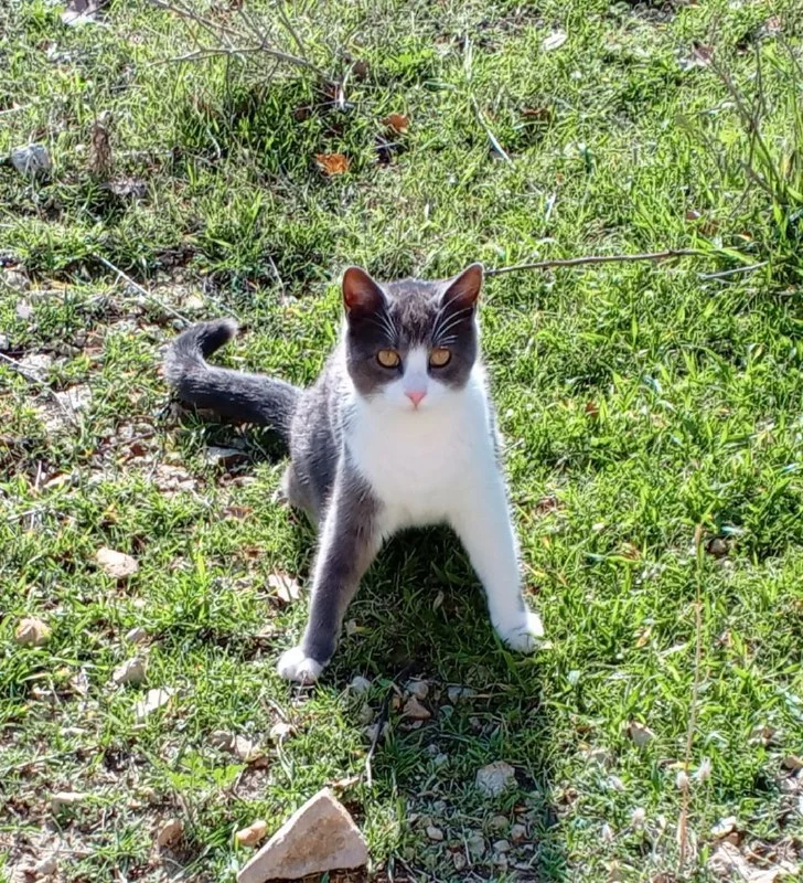 Шапка (серо-белая) - шерсть как у пуховой шапки из советского детства, очень мягкая и приятная, любит ходить хвостиком и от большой любви делает кусь :)