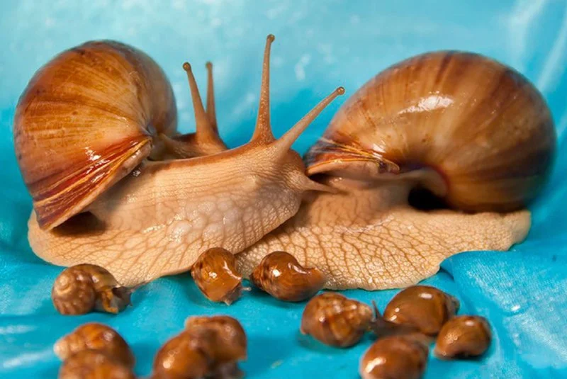 улиток Ахатинских, в наличии 5 штук, возраст 1.5 месяца. вырастают до 16 см . сейчас 3 см