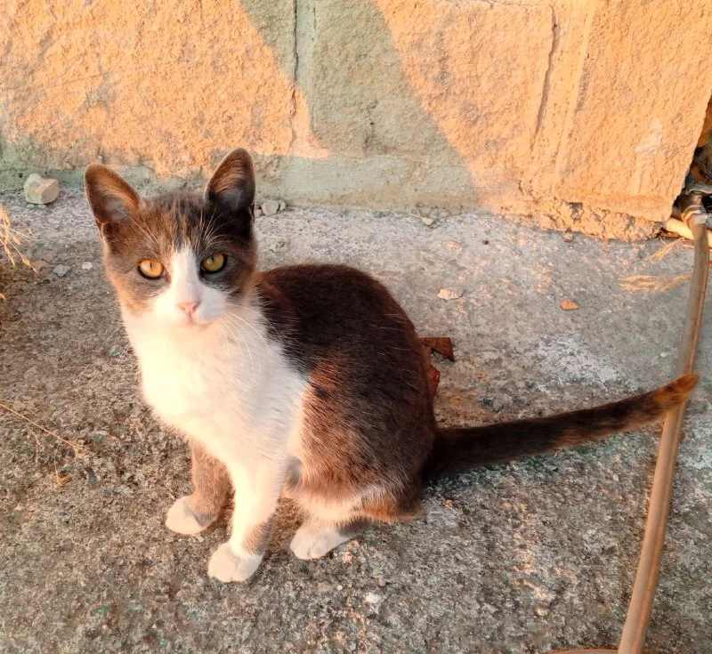 1 мальчик (бело-серый) и 3 девочки (серо-полосатая, трехцветная и серо-белая). В основном питаются сухим кормом.