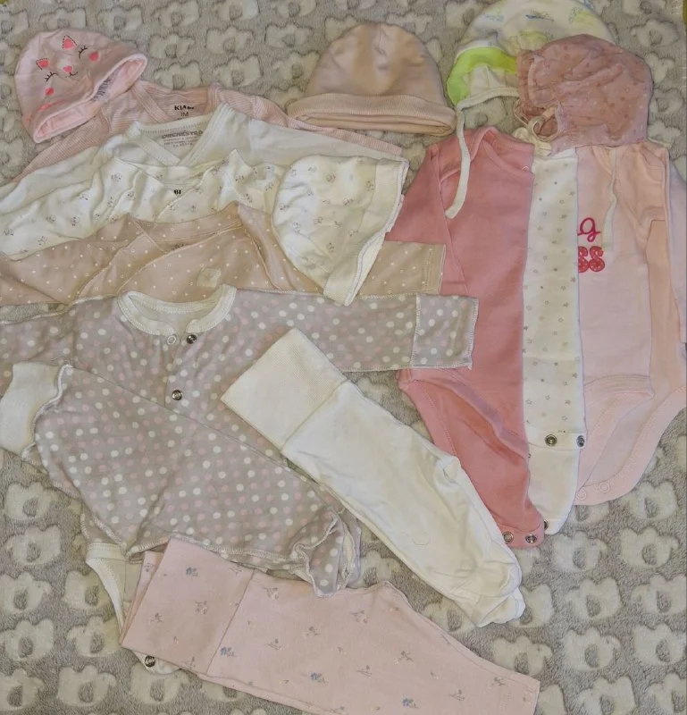 Кто ждёт малышку в октябре- ноябре, обратите внимание на сет этой одежды для новорождённой. Вся одежда из натуральных тканей, многое сшито по правилам пошива одежды для новорождённых, швами наружу+ встроенные антицарапки ( мне была очень полезна одежда с антицарапками,) Практически всё боди "на запах". Большинство слипов утепленые ( велюр ( бархат) один на байке и парочка хлопок). Спальный мешок очень " зашёл ", рекомендую прям! Пеленка эластичная- альтернатива " тугому пеленанию" и 2 тёплых комбенезона для прогулок.