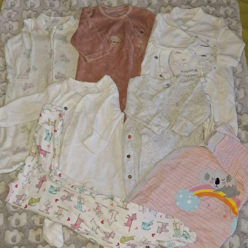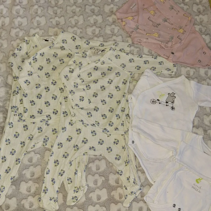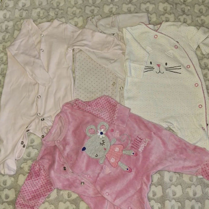 Отдам за пачку подгузников из Лидла ( они стоят около 5 евро) слипы ( межсезонье) для малышки от 3х месяцев. Кто ждёт рождение девочки в июне или в ноябре вам подойдут эти человечки.