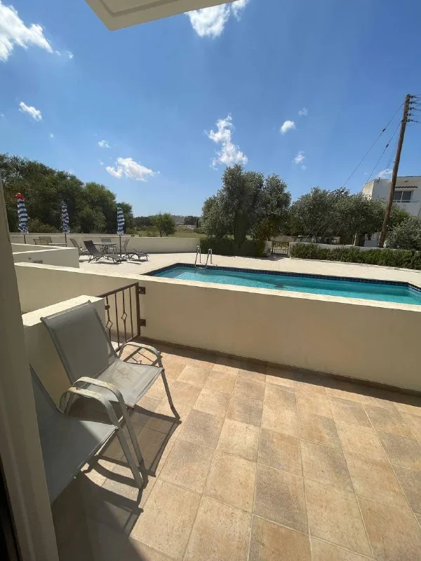 Двуспальная квартира со своим двором, выходом к бассейну.