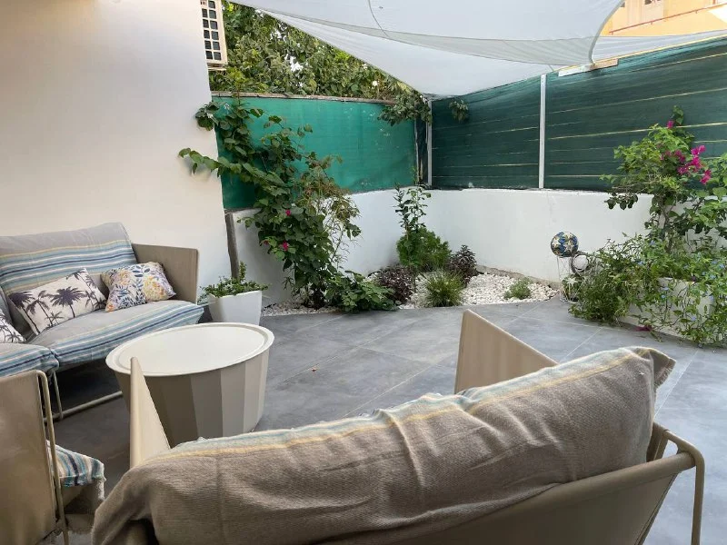 В аренду квартира с 2 спальнями, уютная веранда с небольшим садиком, 200 м от моря, 70 евро сутки/ 1350 евро в месяц. Рядом Caffe Nero, Radisson Beach Hotel.