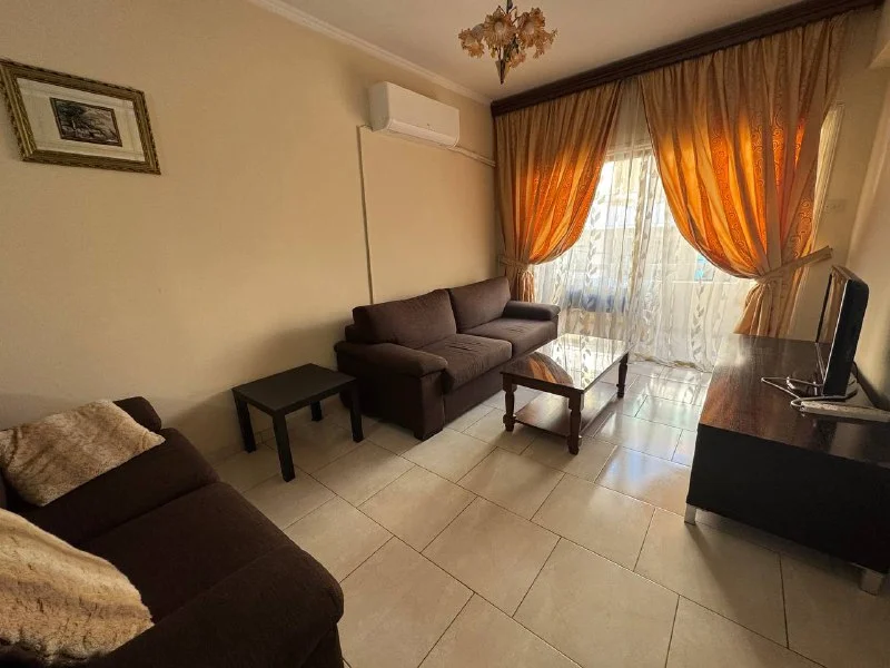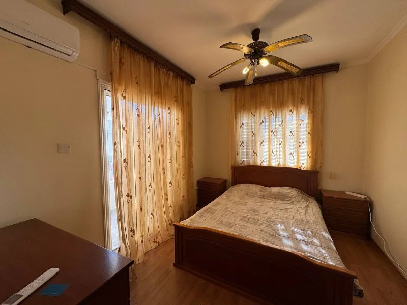 2 bedroom apartment for rent in Larnaca Center. 1 bath, kitchen, new AC, furnished and equipped. Uncovered parking. 850€