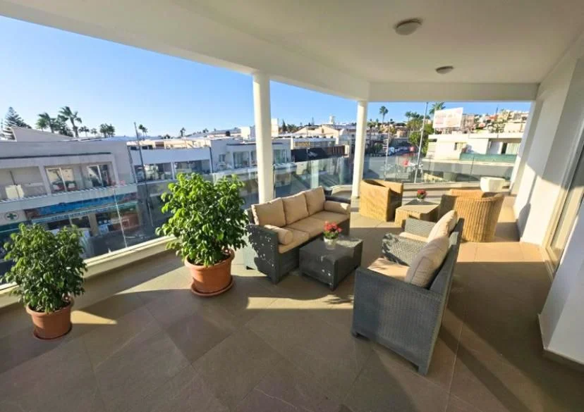Rent apartment in the center of Larnaca, 2bd, parking, big terrasse, furniture, equipment, 1500 euro per month, 200m to Finikoudes.