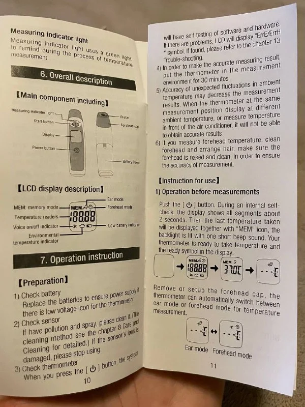 Инфракрасный градусник. Два режима измерения температуры: лоб, ухо.