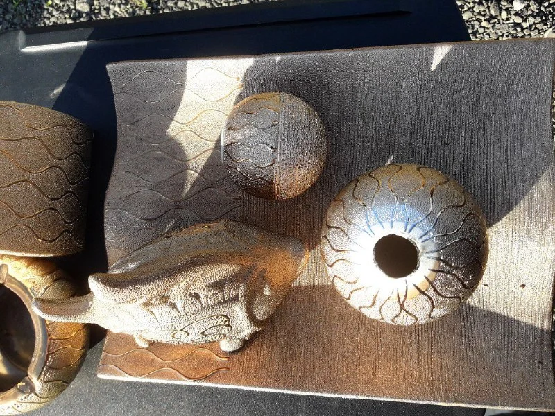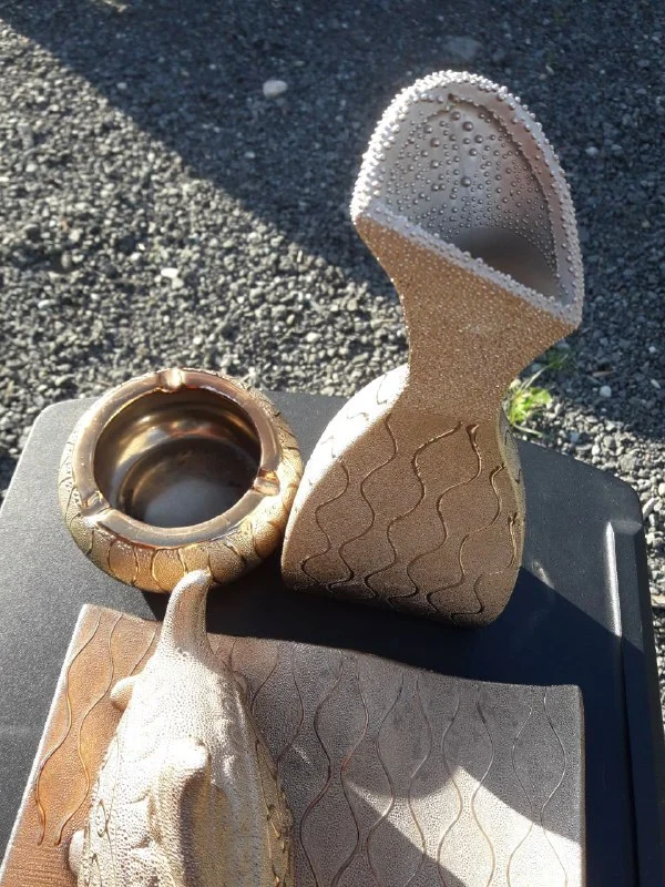 Богатый набор для украшения дома! Смотрится шикарно, отливает золотом, переливается на солнце! Из хорошей керамики, или подобного материала. Состояние на 5, без сколов, все супер!