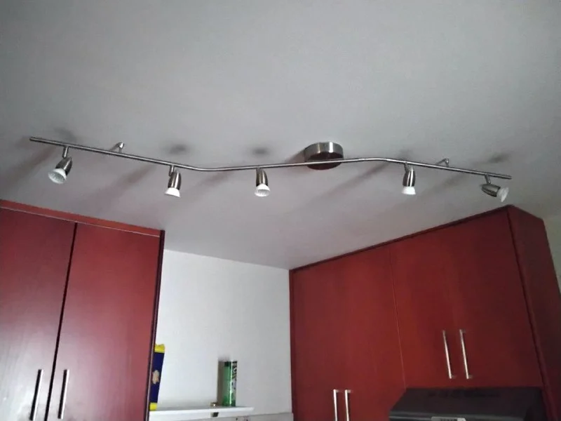 Люстра из пяти ламп. Можно менять направления как ламп, так и лучей самой люстры.