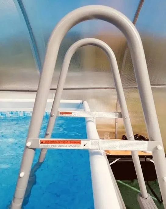 В комплекте все что на фото, фильтр,насос,хлоргенератор,лестница,тент-подстилка,жидкости для чистки,инструкция по установке.