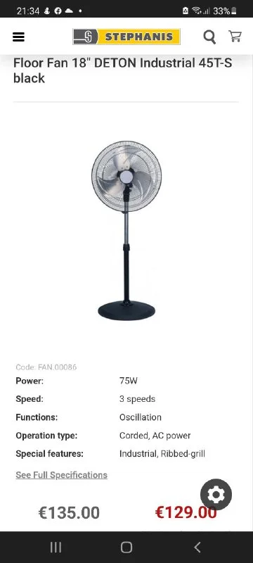 В виду отдьезда с острова продаем вентилятор commercial fan Debton, модель 45T-S, 75 w. 3 скорости. Покупали в Stephanis за 135 евро. Цена для быстрой продажи , снижение цены до 65 евро. Незаменимая вещь в реалиях кипрской жары. Лимассол. Гермасойа