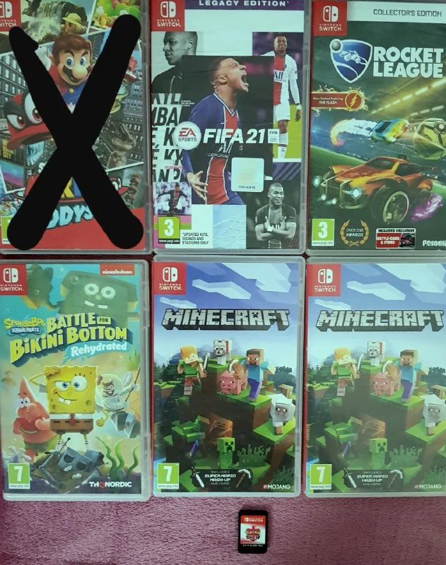 Fifa 21 €20, Rocket League €40, Spongebob €40, Minecraft €40, Pokemon €35