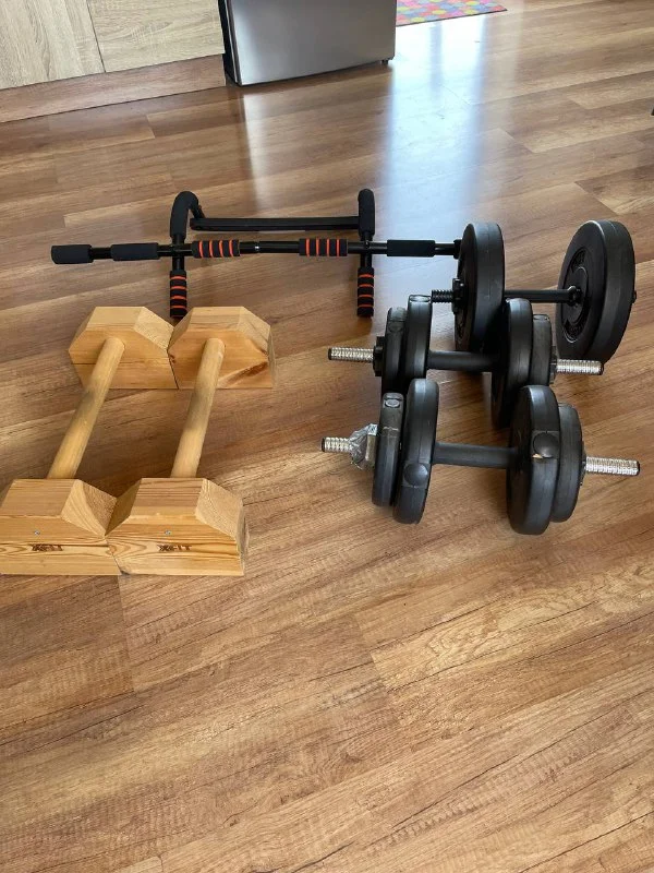 2 гантели по 7.5кг (2.5кг х2, 1.25кг х2) - 25€ (на одной сломан замок)