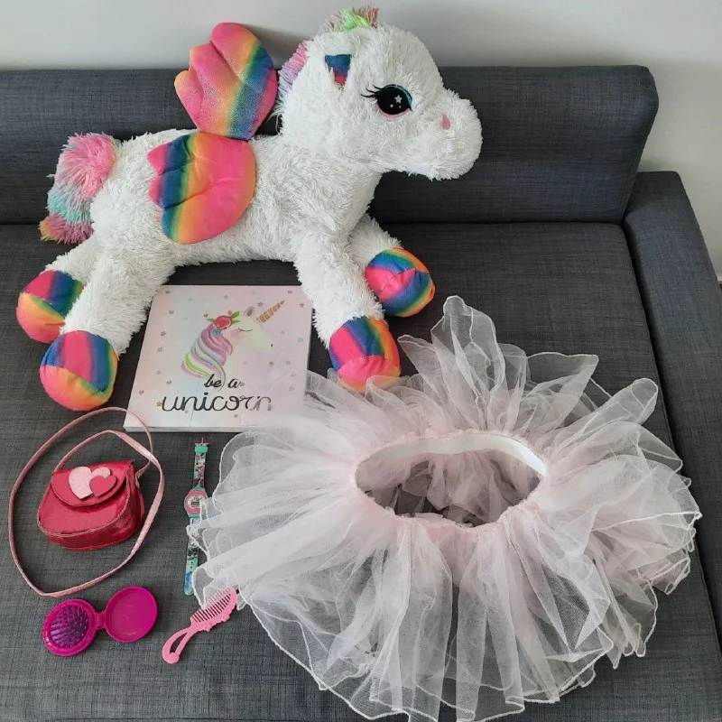 Продается набор для юной принцессы😊: балетная пачка (от 3 до 7 лет), большая сказочная лошадка-пони (длина 80 см), интерьерная картина "Единорог", розовый зонтик с пони (от солнца и дождя), розовая касса для игры в магазин, копилка, подставка для книг, сумочка, часики и прочие милые девчачие штучки. Цена - 20 евро за все вместе, Лимассол.
