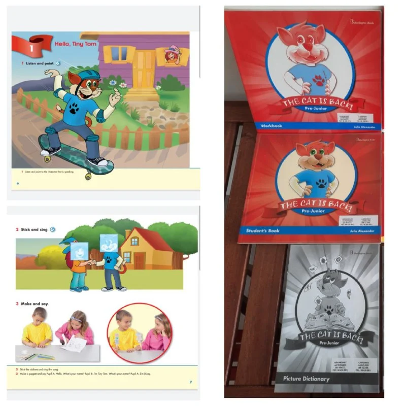 Комплект книг "Montessori Inspired Activities for Pre-Schoolers" (новая), "The Cat is Back for Pre-Junior. Student's Book" (почти новая), "The Cat is Back for Pre-Junior. Workbook" (почти новая, с наклейками), "The Cat is Back. Picture Dictionary" (новая). Цена - 25 евро за все (4 книги), Лимассол.
