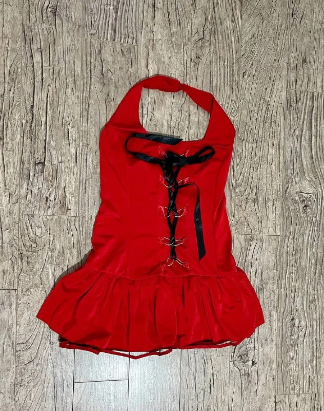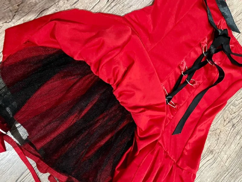 Платье на Хеллоуин. Размер M. Но мне подошёл на размер S, так как можно утянуть. Если дополнить аксессуарами подойдёт практически под любой образ. Могу в подарок отдать запечатанные зубы вампира. Так как пойти на Хеллоуин не получится ( 15 евро. Лимассол