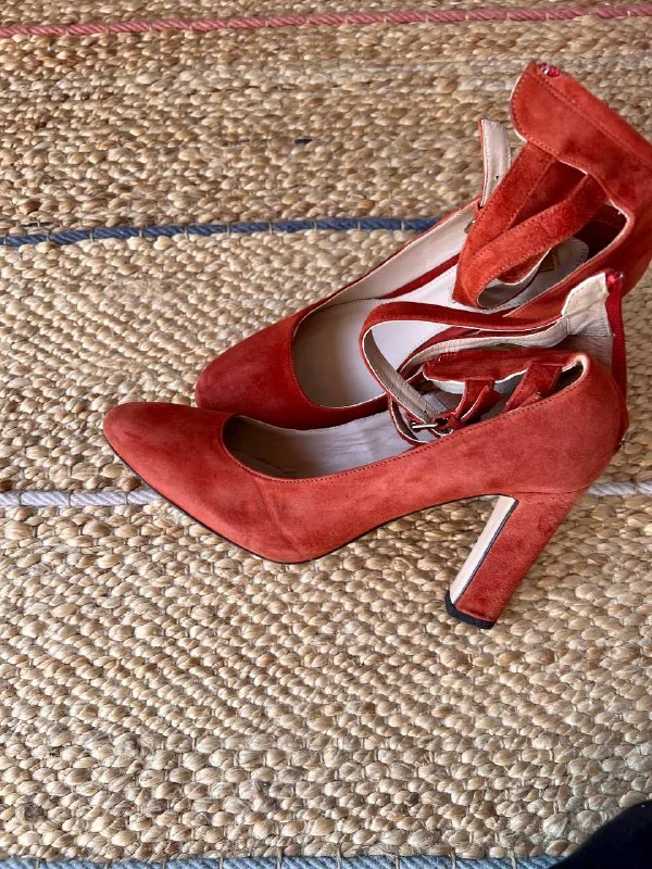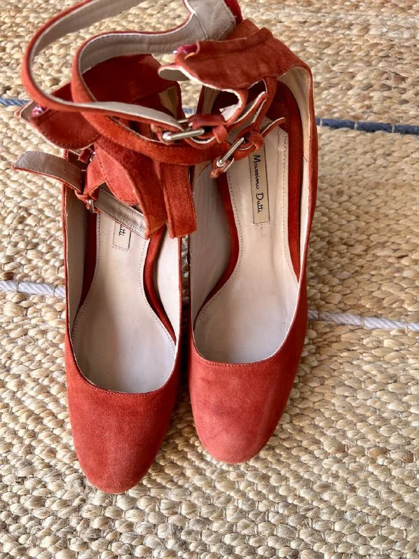 Замшевые туфли на высоком каблуке (9,5 см) Massimo Dutti. Колодка удобная, устойчивые. Размер 39. Состояние на фото.