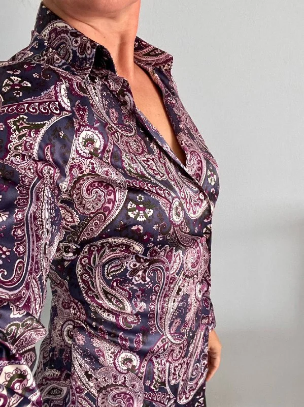 1. Сиреневая с орнаментом огурцов, вискоза, приталенная Hawes&Curtis