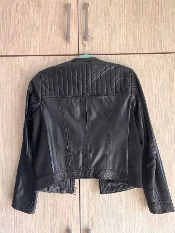 Женская черная кожаная куртка с большими металическими молниями, состояние идеальное. Размер М. 5550€ Пафос