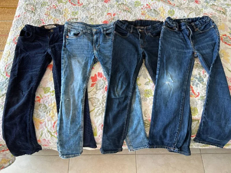 Джинсы для мальчика 8-9 лет /рост 128-134. Две пары повреждены на коленях. Две папы skinny, две пары straight. Темно синие крайние вельвет. Все Gap и H&M. 25 € за все. Пафос
