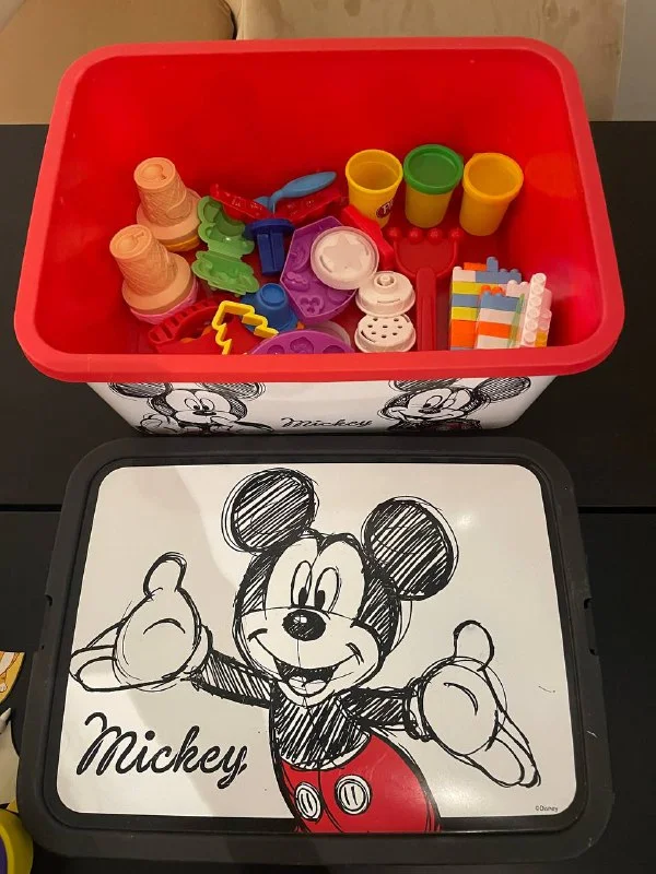 Конструктор и всякие формочки для плей- доха и кинетического песка + коробка большая для игрушек. 10 евро.