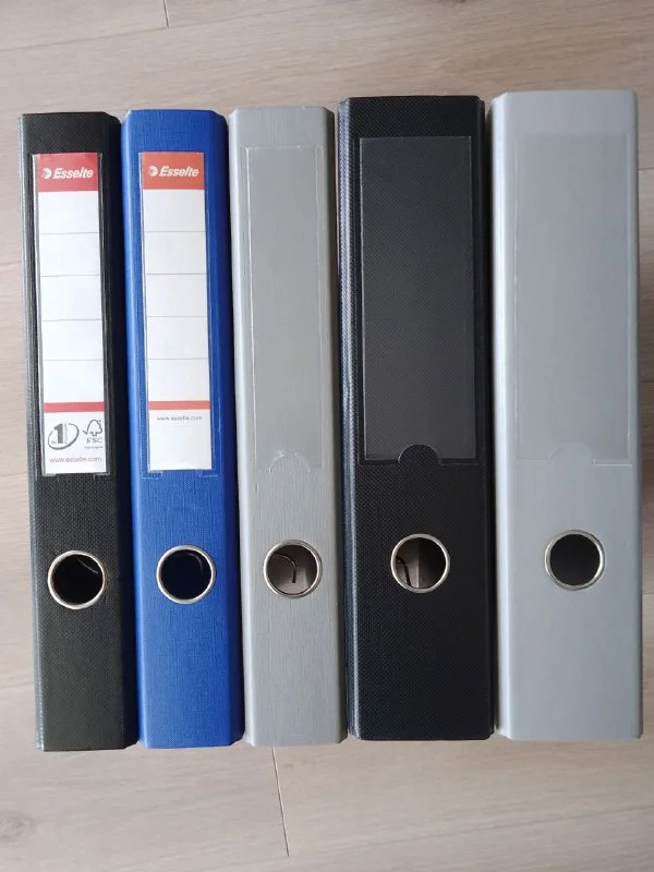 Переезд офиса. Продаются папки-регистраторы бу. Формат А4. В наличии 2 размера: а)280×55×320 и б)280×80×320(мм). Цвета: серый, черный, синий.