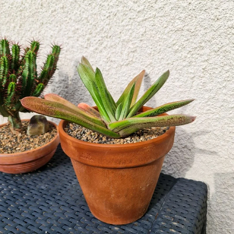 Ещё одна взрослая гастерия с большим количеством деток- Gasteria gracilis. Цветет сейчас, будет цвести еще весной и летом. У этой гастерии гладкие листья нежного зелено-голубого оттенка. Листья в размахе 33 см. Пафос, 15 евро. В воскресенье могу привезти в Лимассол.