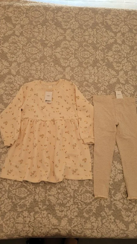 Добрый день! Продам 2 комплекта одежды, спортивное платье( утепленное)+ леггинсы покупала дочери в Next, но нам не подошло.Размер 116-122( 5-6лет) На пухляшек. Платье 30€ леггинсы 8€.Все новое с ярлыками.Пафос Elysia Park.