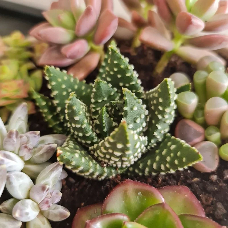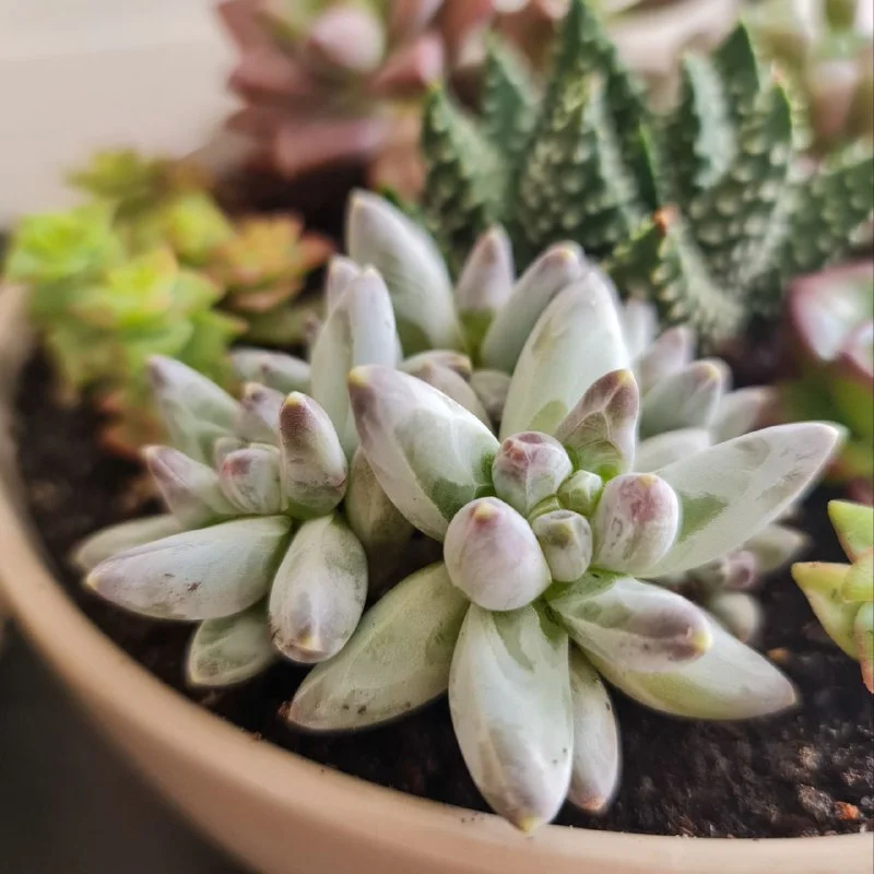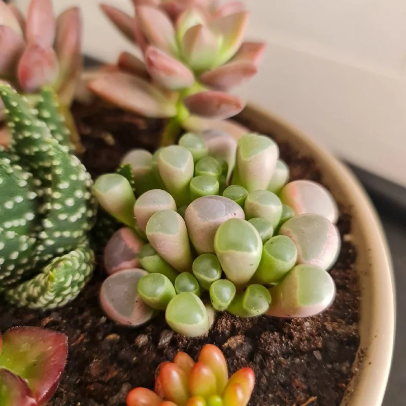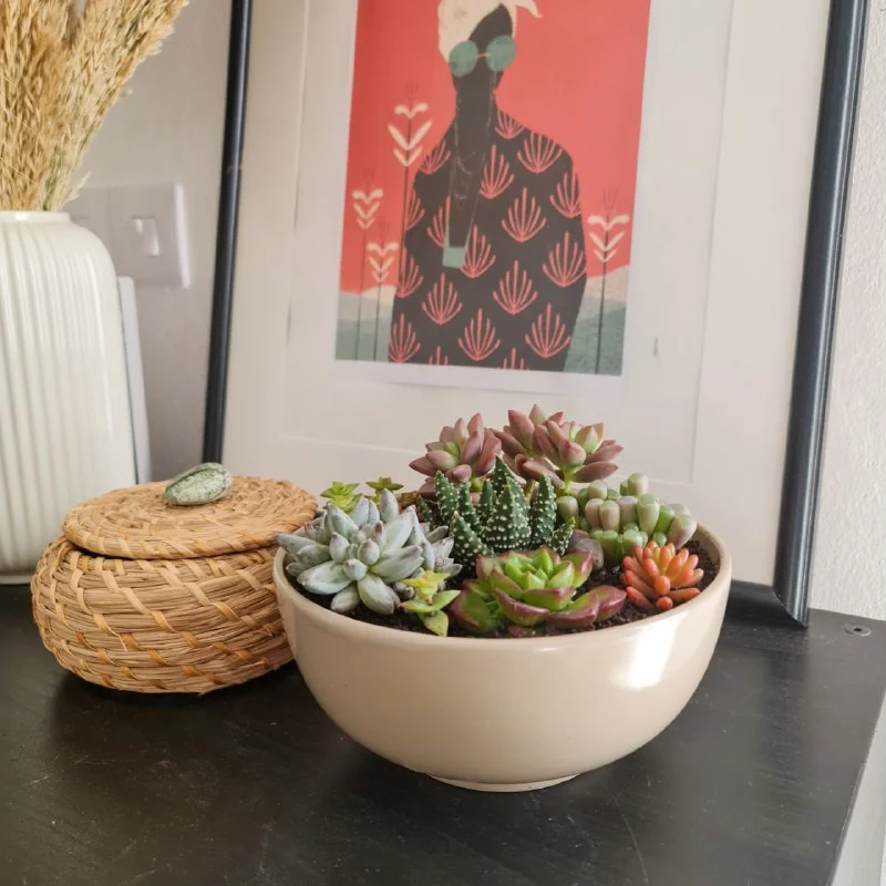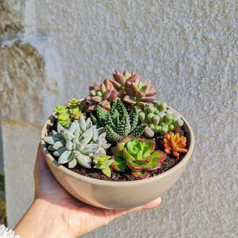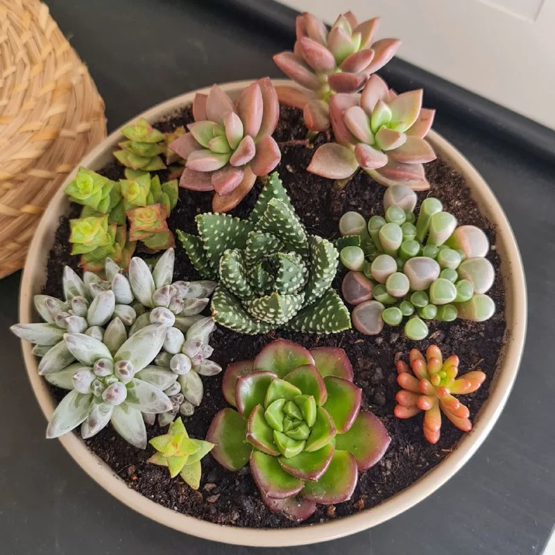 Миниатюрный сад ярких суккулентов в плошке. Ширина плошки 17 см. Пафос, 20 евро.