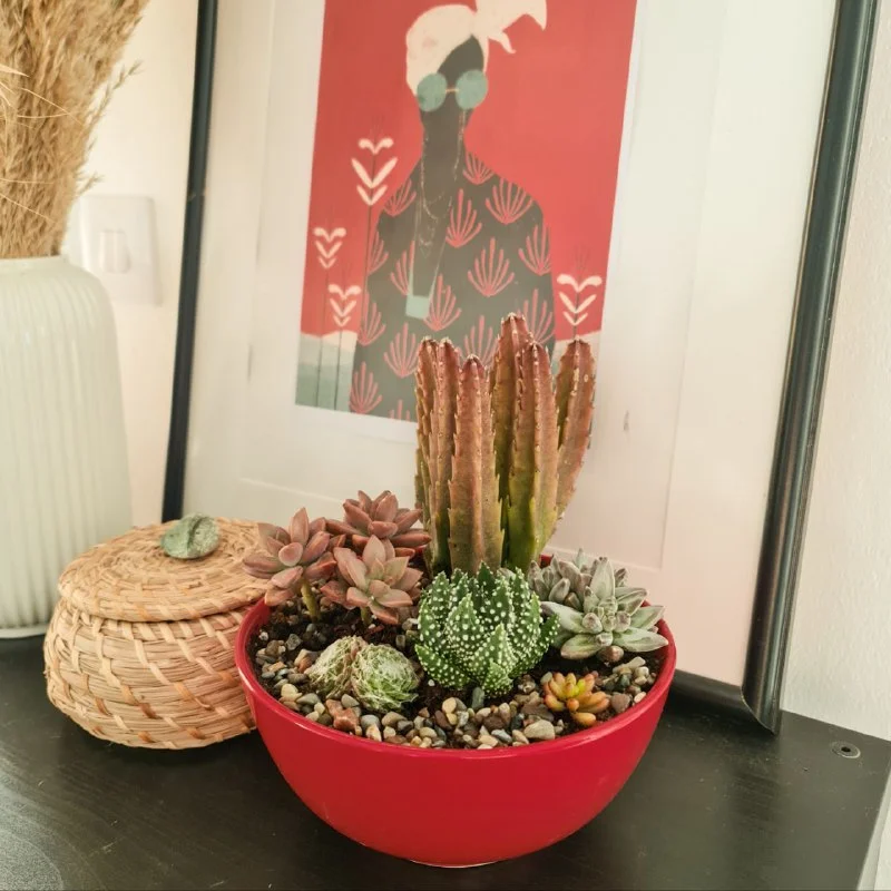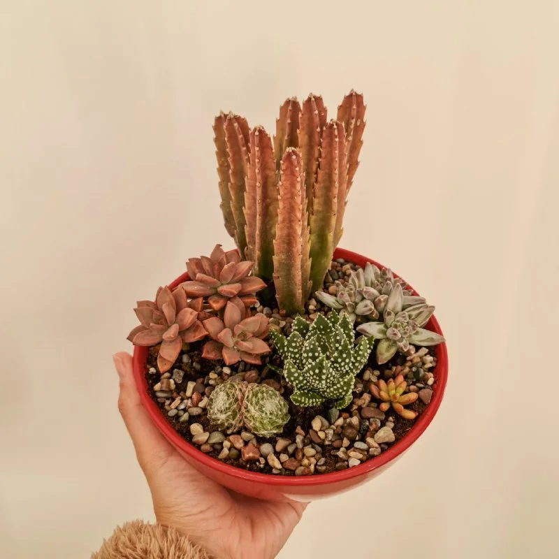 Миниатюрный сад суккулентов с общей темой оттенков красного. Ширина плошки 17 см. Пафос, 20 евро. Завтра могу привезти в Лимассол.