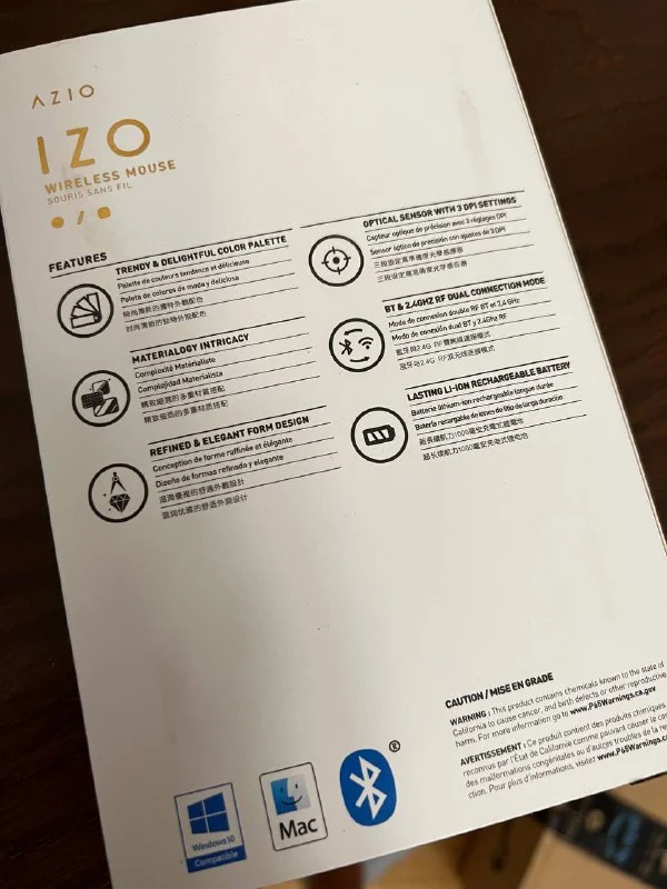 Wireless mouse Azio, совершенно новая в коробке, я случайно заказалa две с Amazon USA. Купила 49,9 долларов США без стоимости доставки. Продать за 30 €
