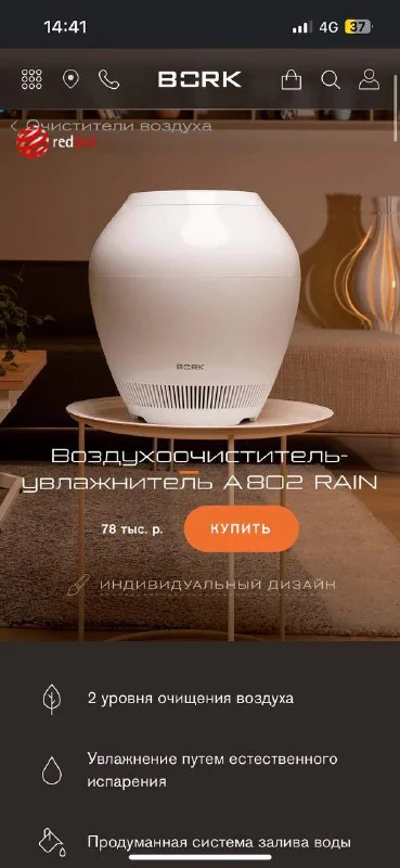 Продаю Воздухоочиститель-увлажнитель Bork A802 RAIN